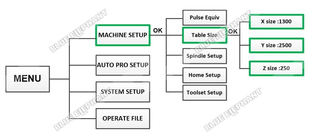 - 2.Input the data.The normal size of X , Y ,Z axes is 1300, 2500 and 250.Don’t forget press “OK”button after you set the data.