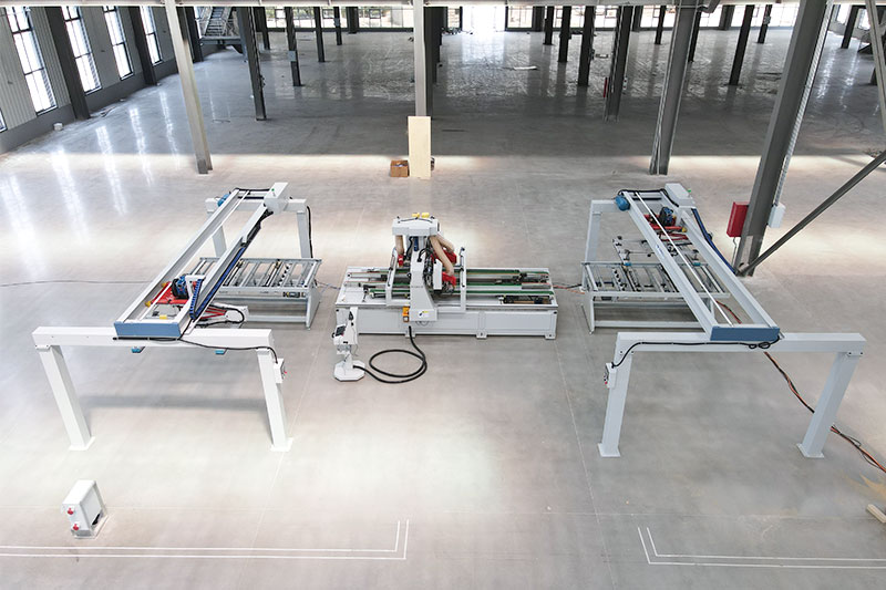 The latest 4 sides cutting saw machine combined with the loading and unloading gantry and the roller conveyor form a wooden door edge cutting production line. The automatic loading and unloading 4 sides cutting saw machine is mainly used for cutting the four sides of wooden doors. At the same time, it can also realize automatic code scanning and unmanned assembly. Therefore, the four sides wood cutting saw machine is an indispensable automatic CNC equipment for wooden door enterprises.