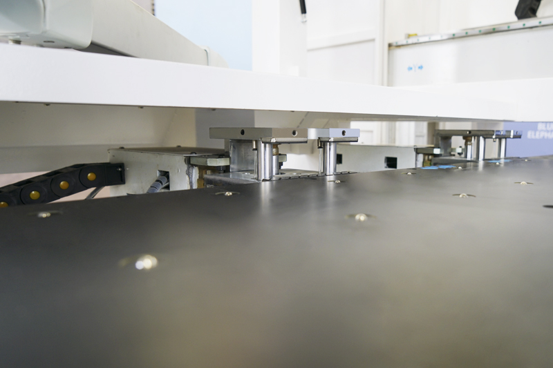 This is an upgraded six-sided CNC drilling machine for sale. Compare with the single head six side CNC drilling machine, it adopts the precision CNC double drill packages developed by Blue Elephant, which ensures the high accuracy and improves the drilling efficiency by 30%. And the return system greatly saves labor and time costs.