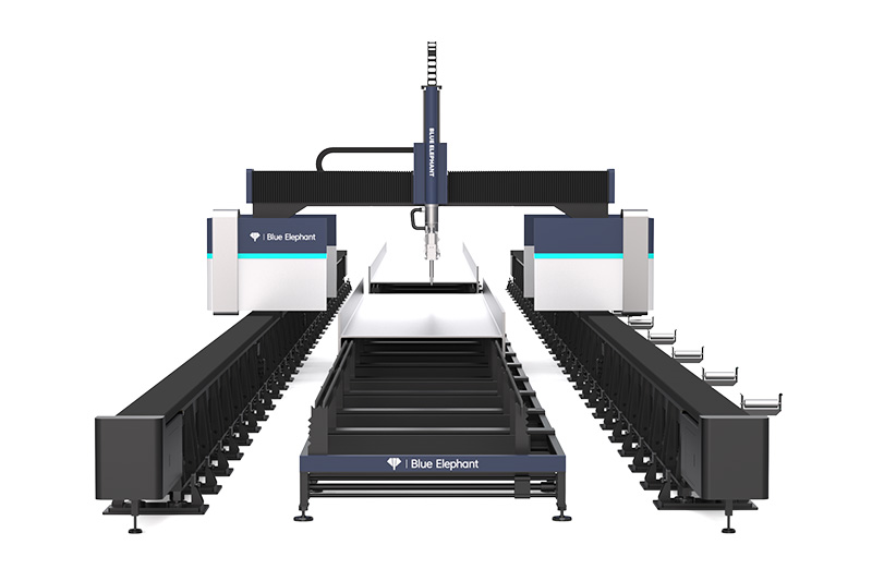 This X800 12KW fiber laser cutting machine adopts a gantry structure and can complete the cutting and processing of web flange grooves, wedge locks and bolt holes of H-shaped steel, channel steel and “工”-shaped steel. It is particularly suitable for the blanking production of variable-section steel workpieces. It can replace traditional sawing machine truncation, lock processing, welding groove cutting and laser pipe cutting machines to save costs.