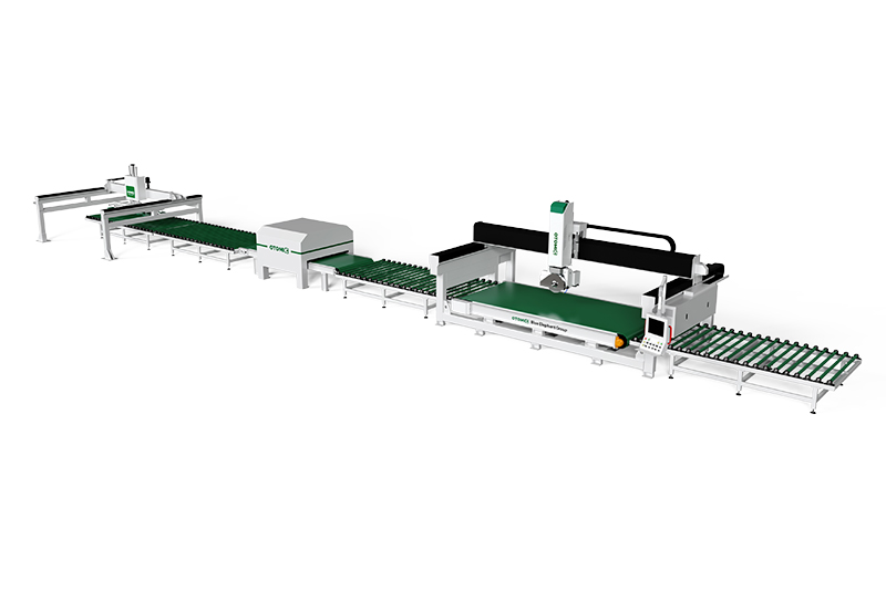 1. Complete intelligent stone processing line: automatic loading, automatic typesetting, automatic knife setting, automatic stone cutting, and automatic unloading.