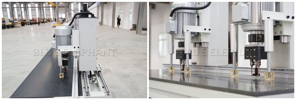 The double-head hinged drill machine can adjust the drilling position longitudinally and horizontally, which is convenient and quick to adapt to the drilling processing requirements. It is an ideal equipment for cabinet, wardrobe, and door processing manufacturers.