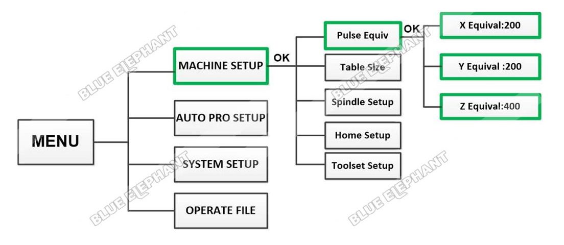 - 1.Press“MENU”button,then choose“MACHINE SETUP”