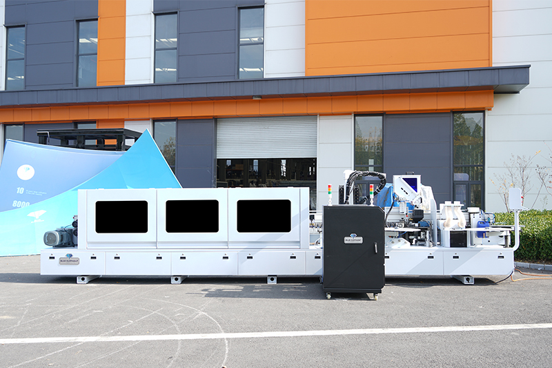 This is the latest and high-end automatic edge bander machine with two gluepots. One is a upper glue pot with a presol box. Another is the no-clean PUR glue pot with a PUR gluing device. It can complete pre-milling, gluing, edge banding, end cutting, rough trimming, fine trimming, profile tracking, scraping, and buffing.