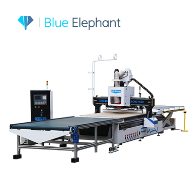 Actually, Blue Elephant CNC Machinery Company provides many different types of nesting CNC machines for sale with many different functions, such as CNC wooden door lock making machine for sale, nesting CNC cabinet door making equipment with saw, auto nesting CNC feeding furniture making machine, automatic furniture making machine with drill, CNC nesting router machine with two worktables, labeling CNC nesting machine for sale, intelligent labeling and nesting cell, etc. They are all entry level nesting machines that added with different processing tools like CNC drill bits, saws, ATC spindles, worktables, labeling system, loading and unloading system, etc, to achieve more processes.